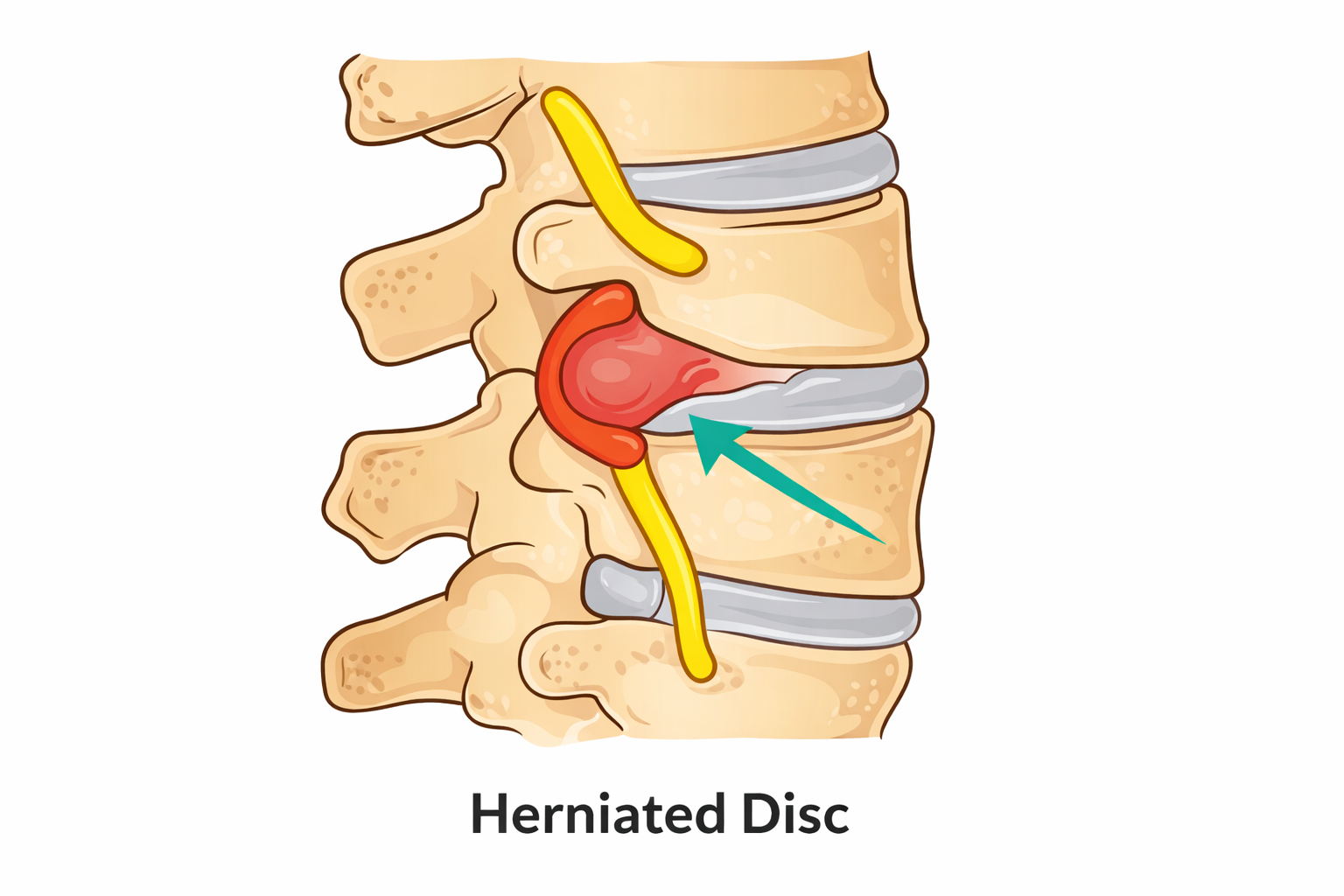A disc herniation occurs when the soft inner portion of an intervertebral disc pushes through the tougher outer layer. Because these discs act as cushions between the vertebrae, a herniation can place pressure on nearby nerves and lead to pain, numbness, tingling, or weakness in the back, arms, or legs depending on the location of the affected disc. Herniated discs are often associated with lifting injuries, repetitive strain, or gradual wear over time. Early care can help reduce inflammation and support the spine while it heals.
