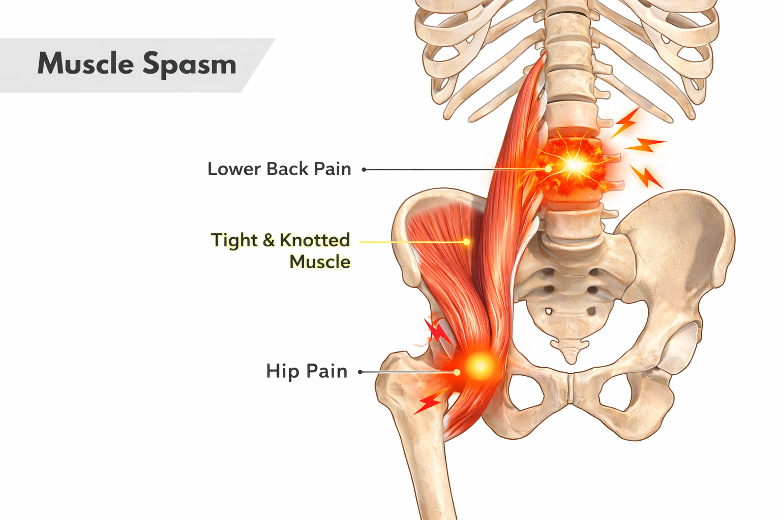 A muscle spasm in the back occurs when muscle fibers suddenly contract and tighten involuntarily. This can happen due to injury, overuse, poor posture, dehydration, or as the body’s protective response to an underlying spinal issue. Muscle spasms often cause sharp pain, stiffness, and limited movement, making it difficult to bend or twist. While spasms can feel alarming, they are frequently the body’s way of stabilizing an irritated area until proper healing and support occur.